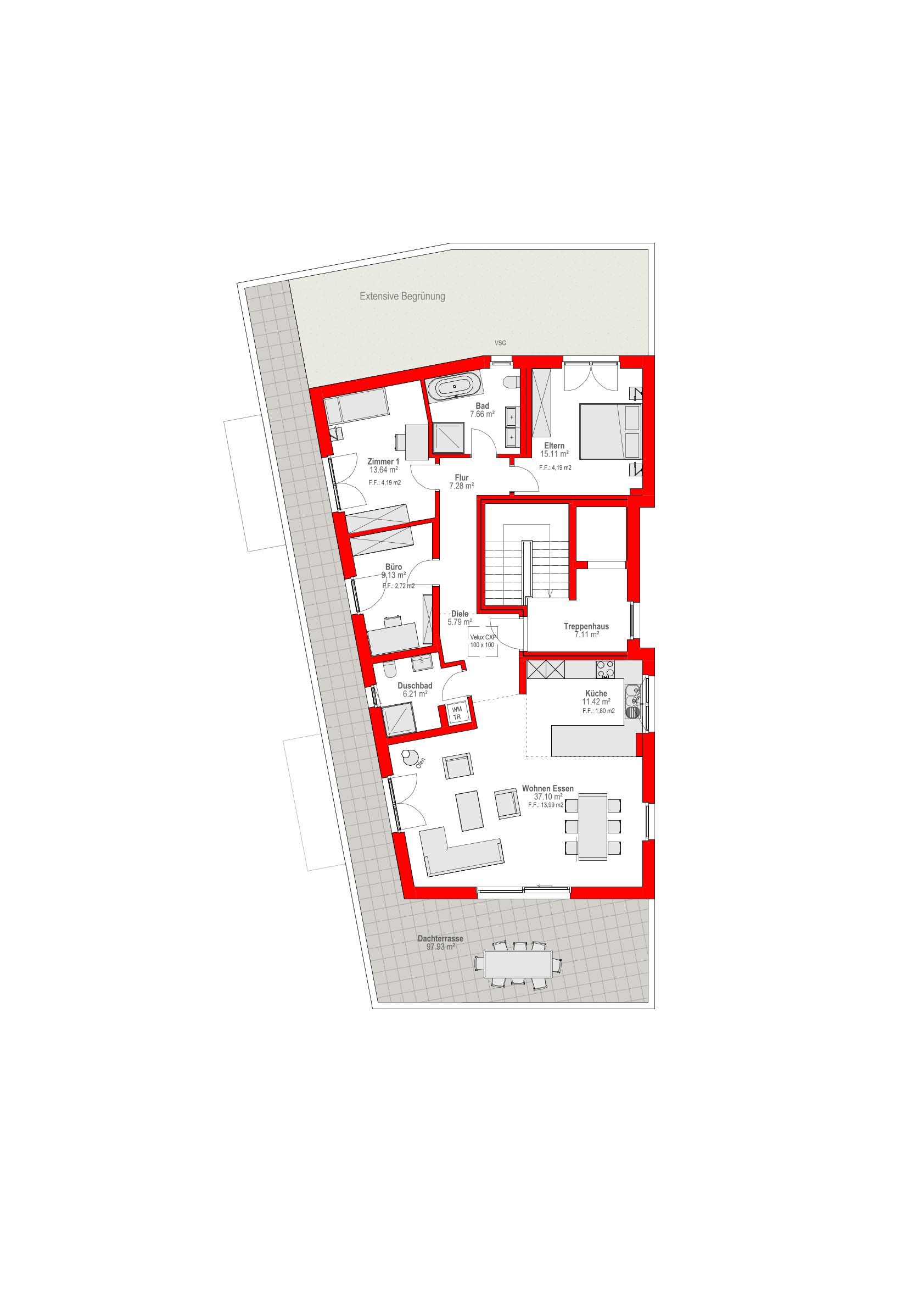 Die moderne und zeitlose Architektur richtet sich an Menschen, die einen individuellen Wohnstil, klare Linien, viel nutzbare Wohnfläche und einen hohen Ausbaustandard schätzen.