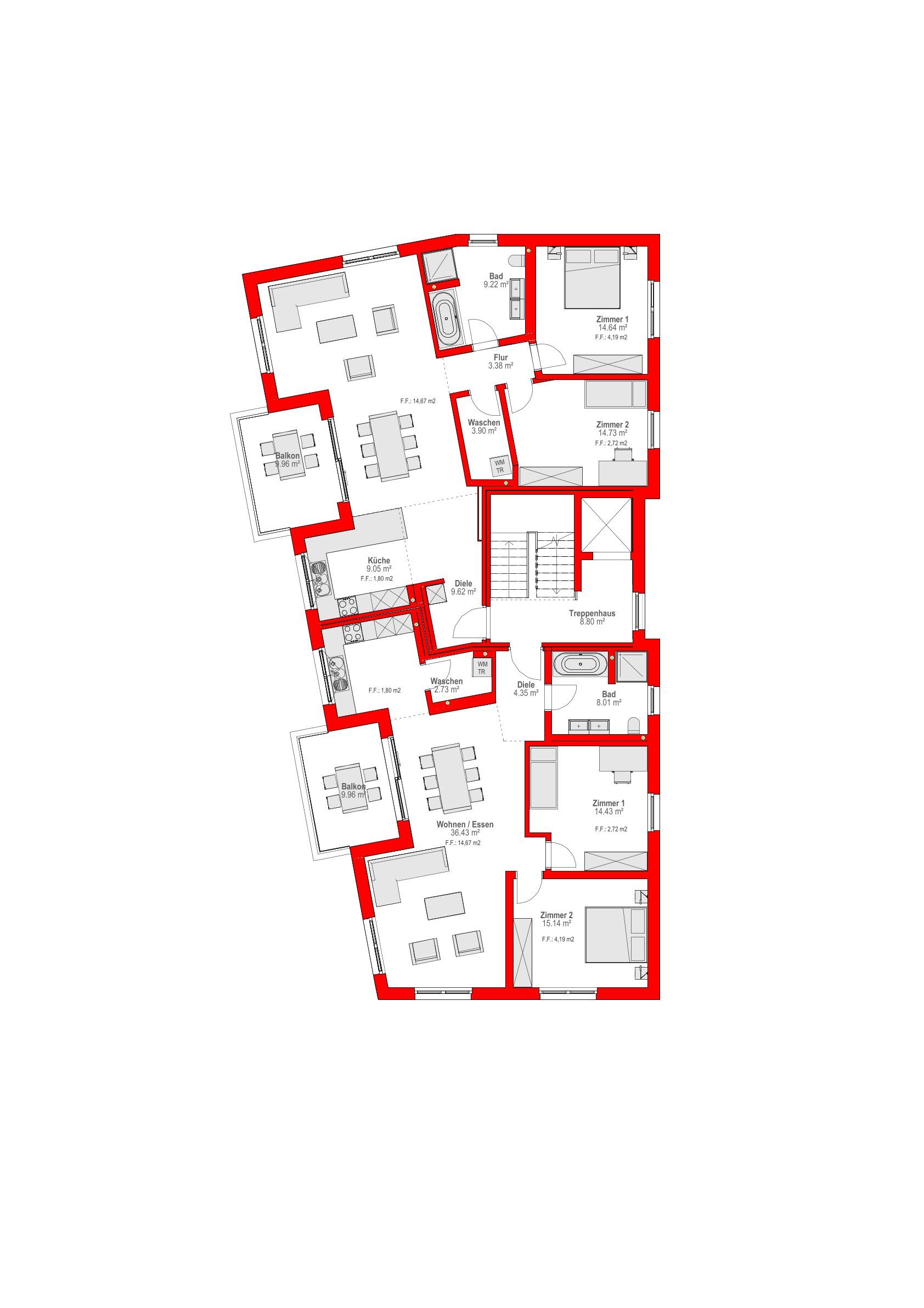 | W3 | 3.5 | Etagenwohnung | 100 m2 | 1. Obergeschoss | - | - | Verkauft |